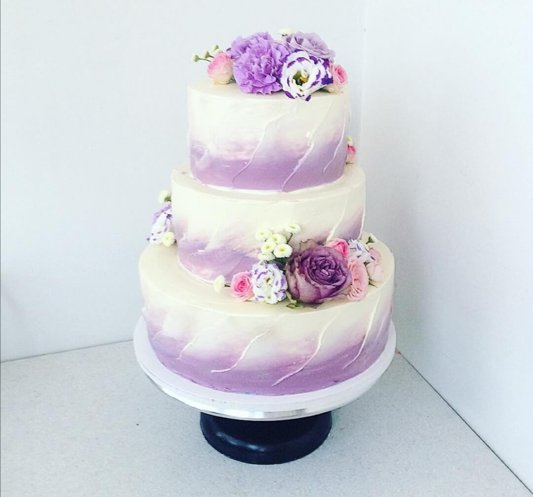 Хоть в этом тортике и не виднеются веточки сирени, однако вся его цветовая гамма напоминает нам о весне, когда цветут эти красивые деревья и начинается пора свадеб...